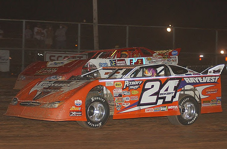 Rick battles Mike Balzano at the I-79 (WV) Speedway in 2003 -