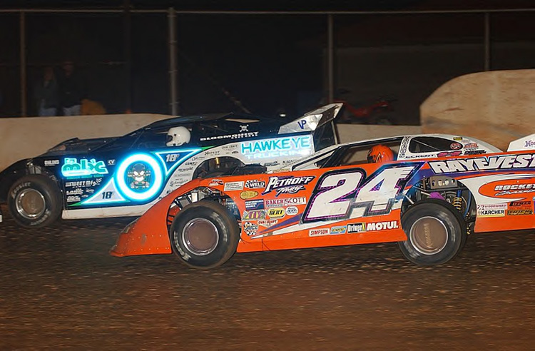 Rick battles Scott Bloomquist at the West Virginia Motor Speedway in 2003 -
