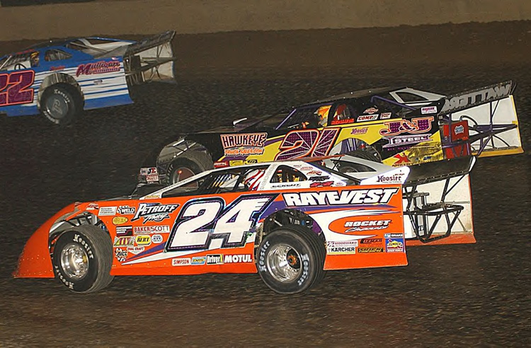 Rick battles Billy Moyer in the 2003 'World 100' at Eldora -