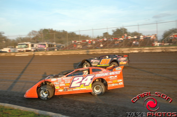 Rick races Aaron Ridley at the Volusia (FL) Speedway Park in February 2006 -