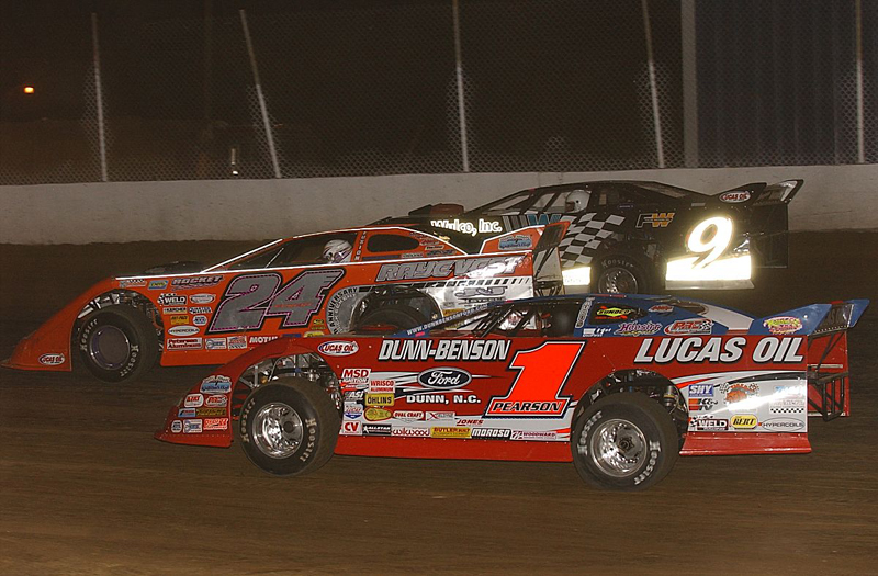 Rick Eckert races three-wide at the Florence (KY) Speedway on June 3, 2006 -