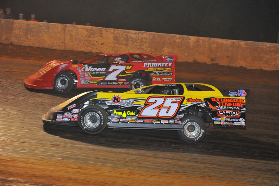 Rick Eckert races hard at Ponderosa (KY) Speedway on May 8, 2015 -